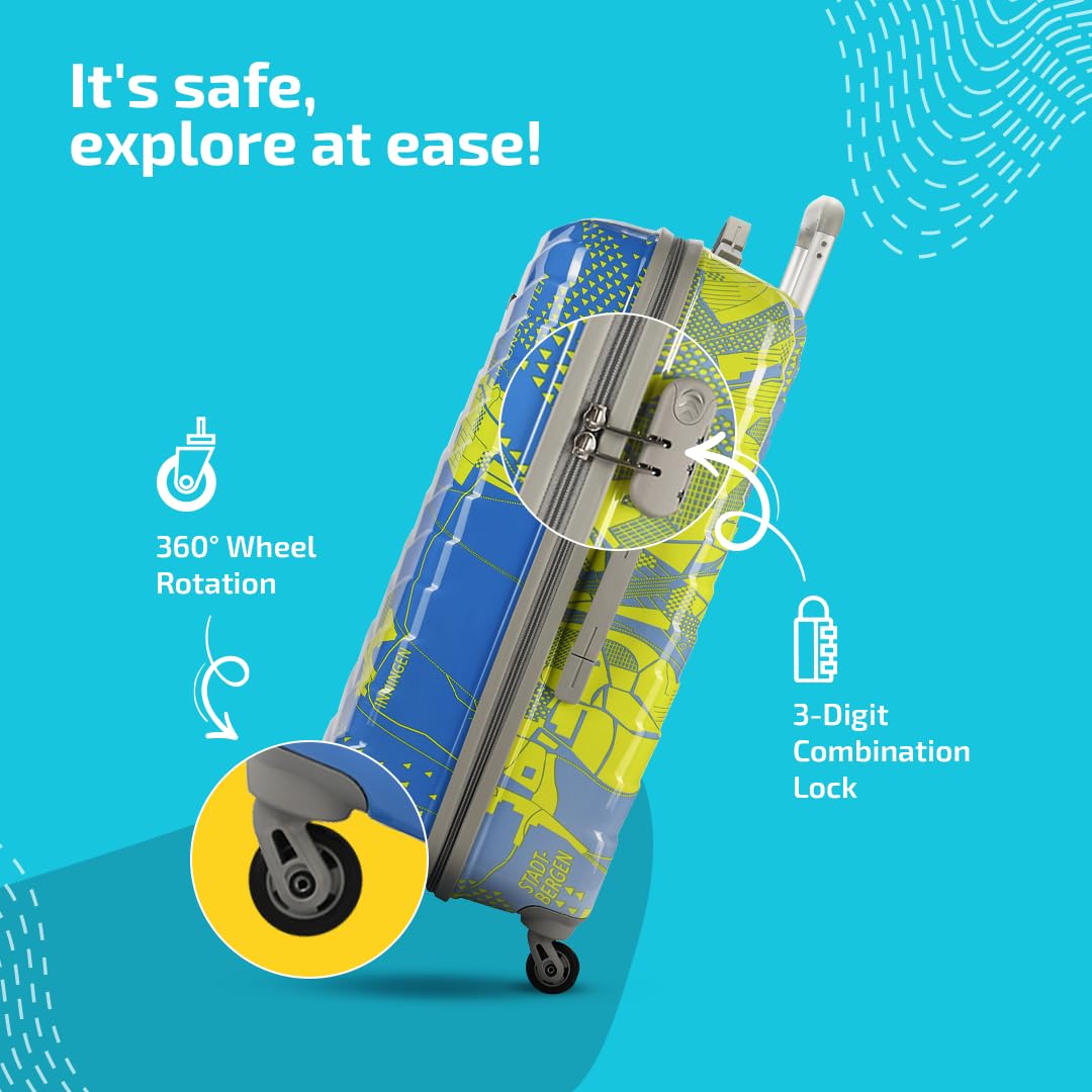 Skybags Trooper Large Size Abs Hardshell Luggage (75 cm) | Printed Luggage Inline Trolley Bag with 4 Wheels and Resetable Combination Lock | Unisex, Blue, Yellow