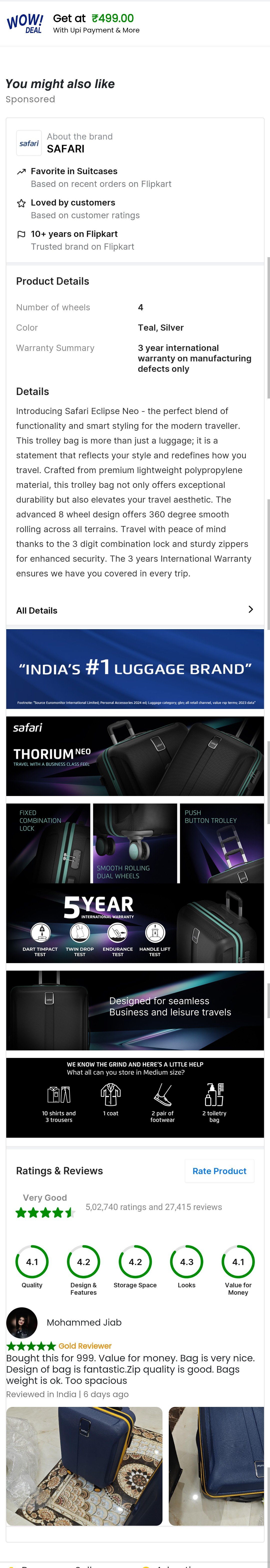 Safari Thorium Neo 8 Wheels 66 Cm Medium Check-in Trolley Bag Hard Case Polycarbonate 360 Degree Wheeling System Luggage, Trolley Bags for Travel, Speed_Wheel Suitcase for Travel, Graphite Blue